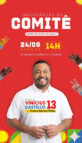 O candidato Vinícius Castello fará a inauguração do seu comitê eleitoral no próximo sábado (24). Um evento que contará com