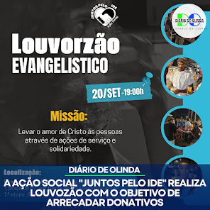 A ação social,”Juntos Pelo IDE”, irá realizar um Louvozão na Praça da B7, em Rio Doce. O evento acontecerá no