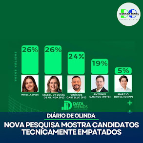 Na madrugada desta segunda-feira (16), foi divulgada uma pesquisa realizada pelo Instituto Data Trends sobre o cenário eleitoral em Olinda.
