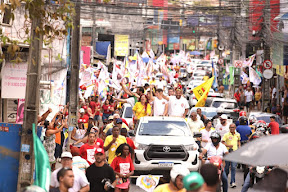 Em uma grande carreata com os candidatos das cidades irmãs, Recife e Olinda, Vinícius Castello (PT) e João Campos (PSB)