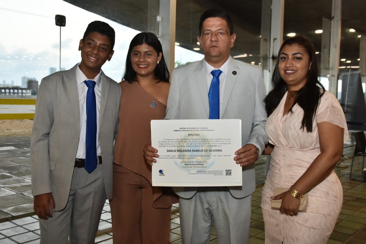 O vereador reeleito e presidente da Câmara, Saulo Holanda (MDB), participou da cerimônia de diplomação organizada pelo TRE e estava