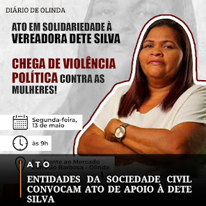 Organizações da sociedade civil convocaram um ato em apoio a vereadora Dete Silva, que sofreu ataques, pelo também vereador, Tostão,